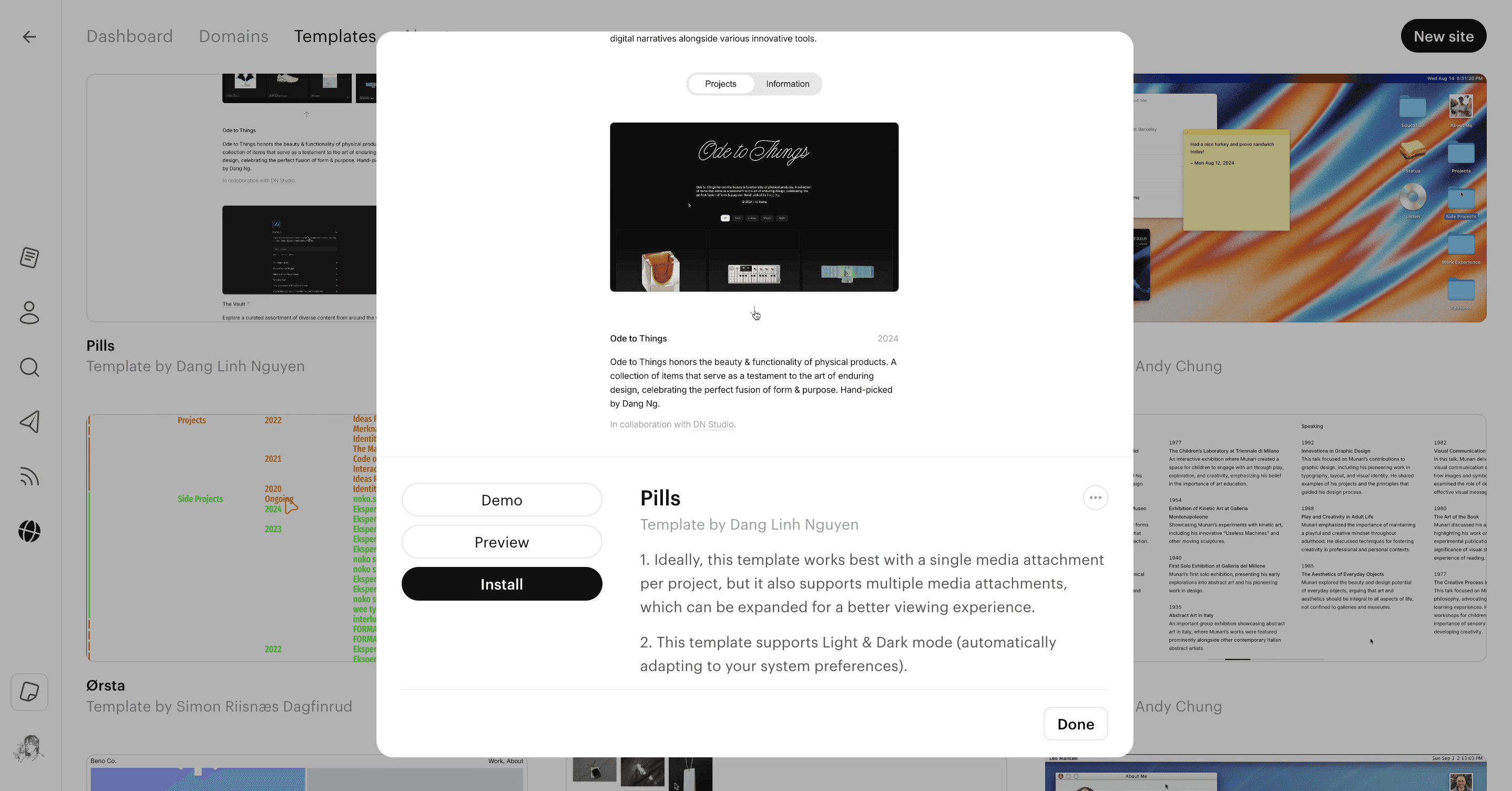 Pills is a minimal, customizable Read.cv template featuring a sleek pill-shaped toggle for effortlessly navigating sections with clarity & simplicity.